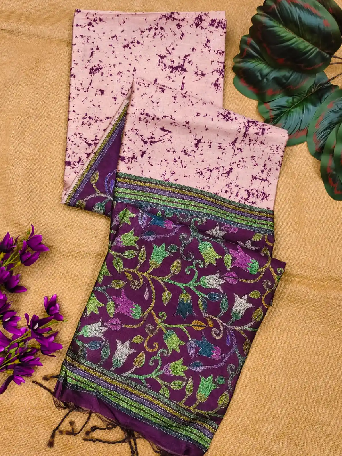 Soft Tussar Silk Saree with beautiful floral print - WINE