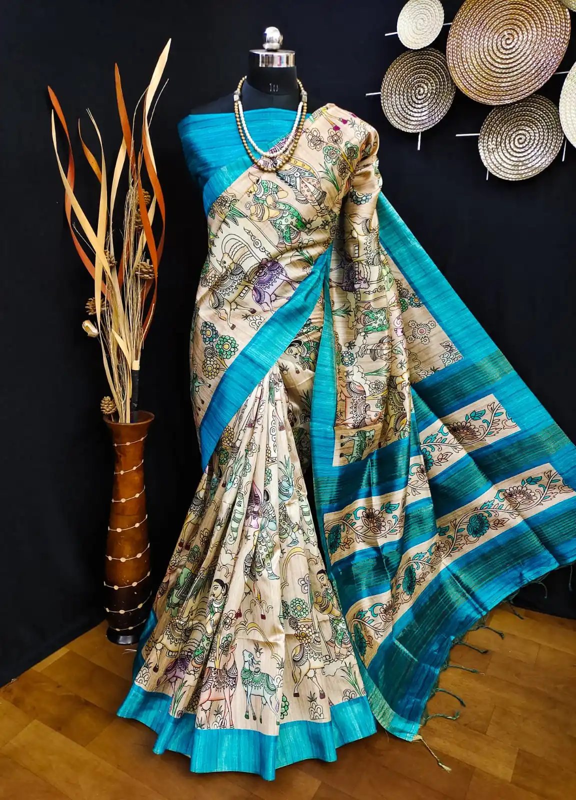 FIROZI - Tussar Silk Kalamkari Saree