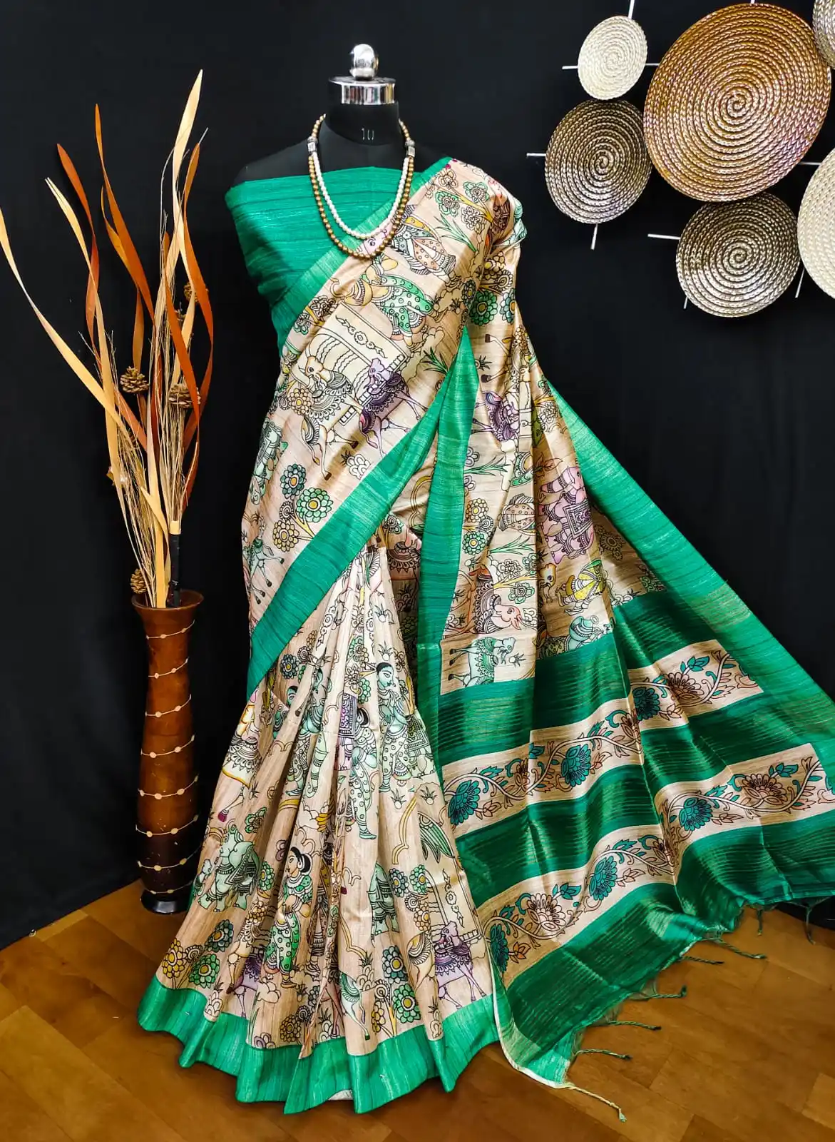 GREEN - Tussar Silk Kalamkari Saree